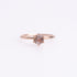 Indulge in the luxurious design of the Bloom Ring, featuring a round-shaped stone delicately held by 6 symmetrical prongs on a 14K gold or Sterling silver band with a 1.2 mm diameter.