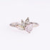 Introducing the Paola Ring, a stunning creation crafted from lustrous white gold. This striking ring features a captivating drop-cut purple sapphire at its center, surrounded by three exquisite navette-shaped stones. Among them, one is a mesmerizing watermelon tourmaline, its unique color transitioning from pinkish to greenish hues, adding a touch of vibrant charm. The other two navette stones are olivins, offering a harmonious balance of rich color and brilliance. Currently available in size 54, this ring can be customized to fit your individual style. Size adjustments are included in the price. Experience the allure of this one-of-a-kind design with the Paola Ring, where every stone tells a beautiful story.